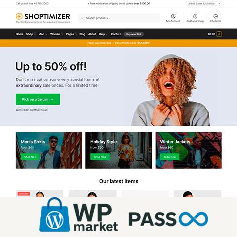 Shoptimizer es un tema diseñado para WooCommerce y centrado en la velocidad de carga, que incluye muchas funcionalidades pensadas para convertir visitantes en clientes.